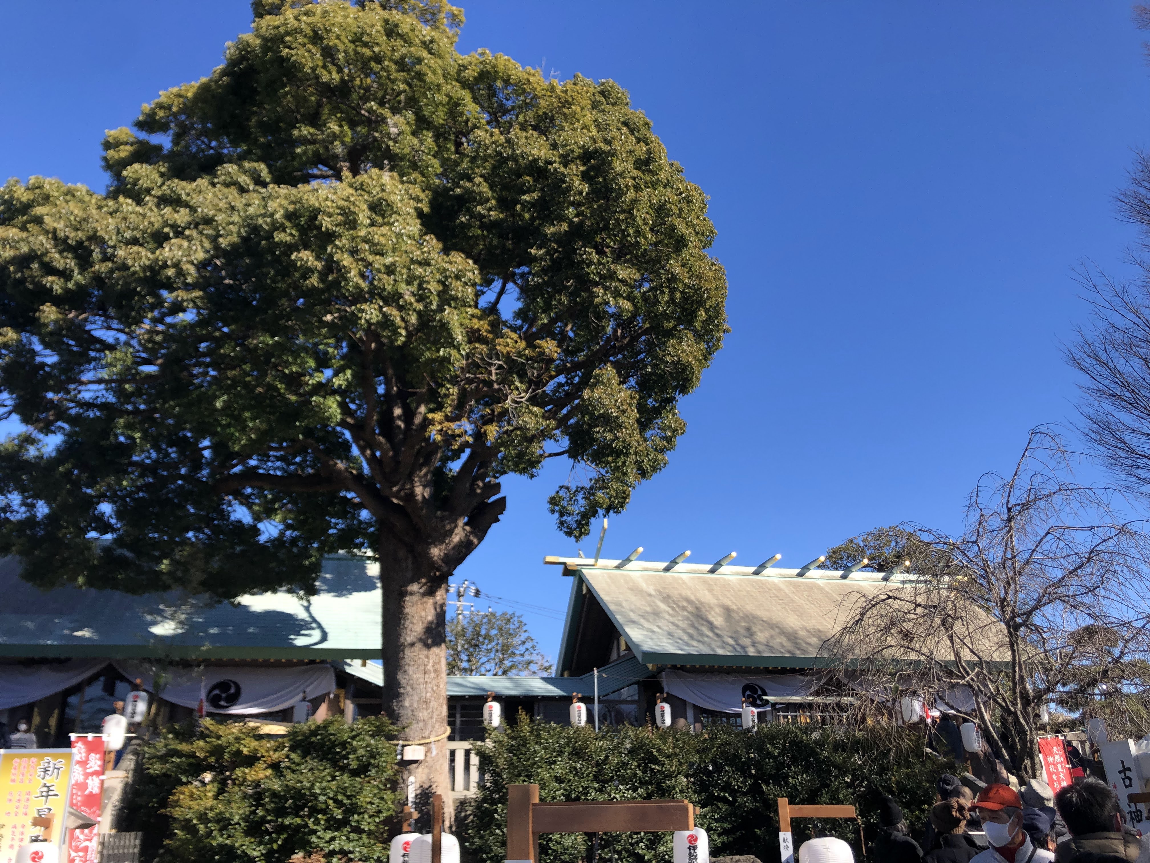 昨年暮れにパラついた粉雪でしたが、元旦にはご覧の通りの日本晴れ、家族で 家から歩いて数分の神社に行ってきました。